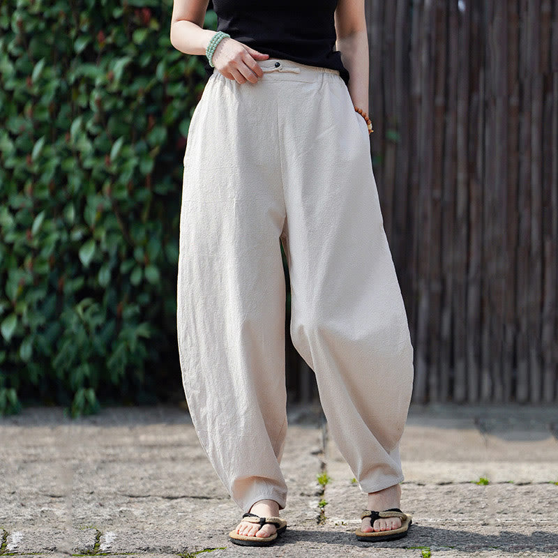 Buddha Stones Summer Plain One Chinese Frog-Button Straight Leg Design Men's Cotton Linen Pants With Pockets - Beige - US/UK/AU46,EU56 (5XL) - image 0
