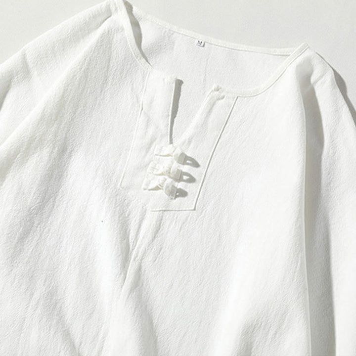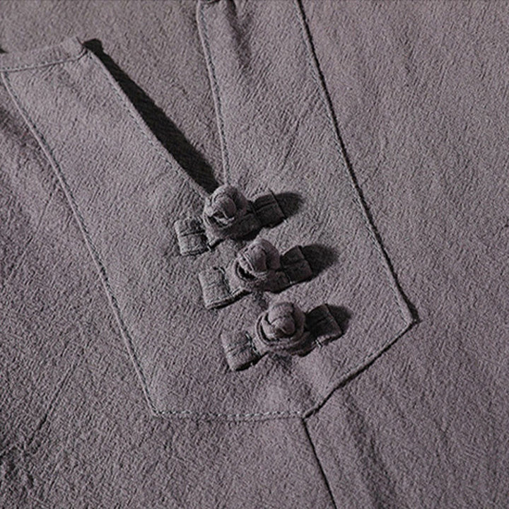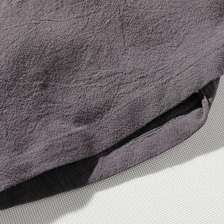 Buddha Stones 2Pcs Plain Notched Collar T-Shirt 7-8 Length Wide Leg Shorts With Pockets Cotton Linen Men's Meditation Cloth Set