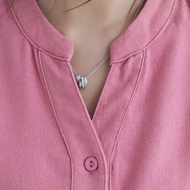 Buddha Stones Casual Daily Pure Color Button Design Short Sleeve Cotton Linen Midi Dress With Pockets