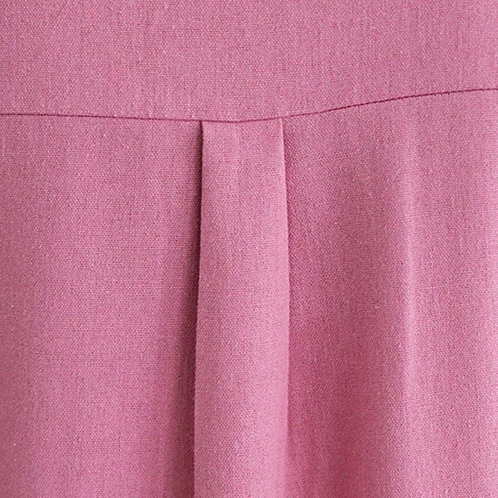 Buddha Stones Casual Daily Pure Color Button Design Short Sleeve Cotton Linen Midi Dress With Pockets - HotPink - US8-10,UK/AU12-14,EU40-42 (2XL) - image 0