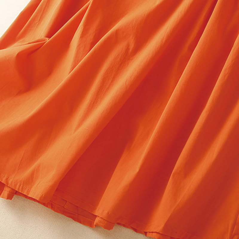 Buddha Stones Casual Pure Color Design Short Sleeve V-Neck Cotton Midi Dress With Pockets - OrangeRed - US8-10,UK/AU12-14,EU40-42 (2XL) - image 4