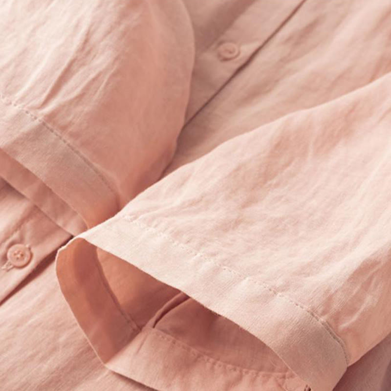 Buddha Stones Casual Women's Embroidery Standing Collar Half Sleeve Design Cotton Linen Shirt