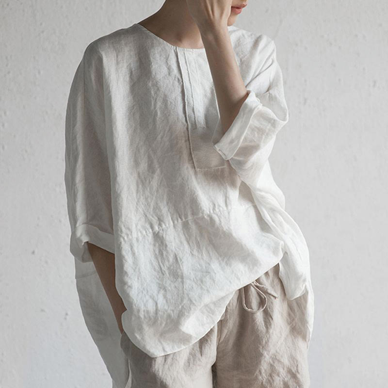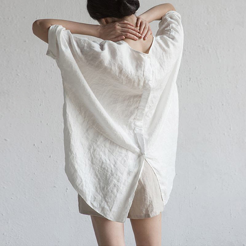 Buddha Stones Summer Casual Plain Half Sleeve Crew Neck Side Slit Women's T-Shirt - FloralWhite - US20,UK/AU24,EU52 (5XL) - image 0