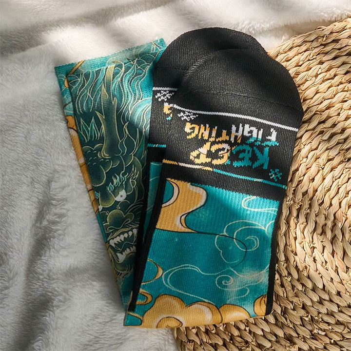 Buddha Stones Casual Dragon Auspicious Clouds Design Micro Crew Men's Socks
