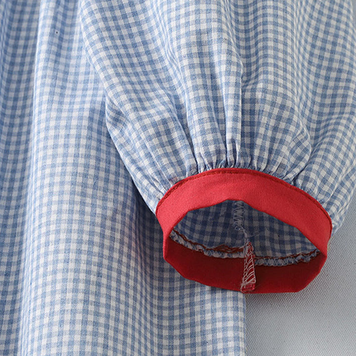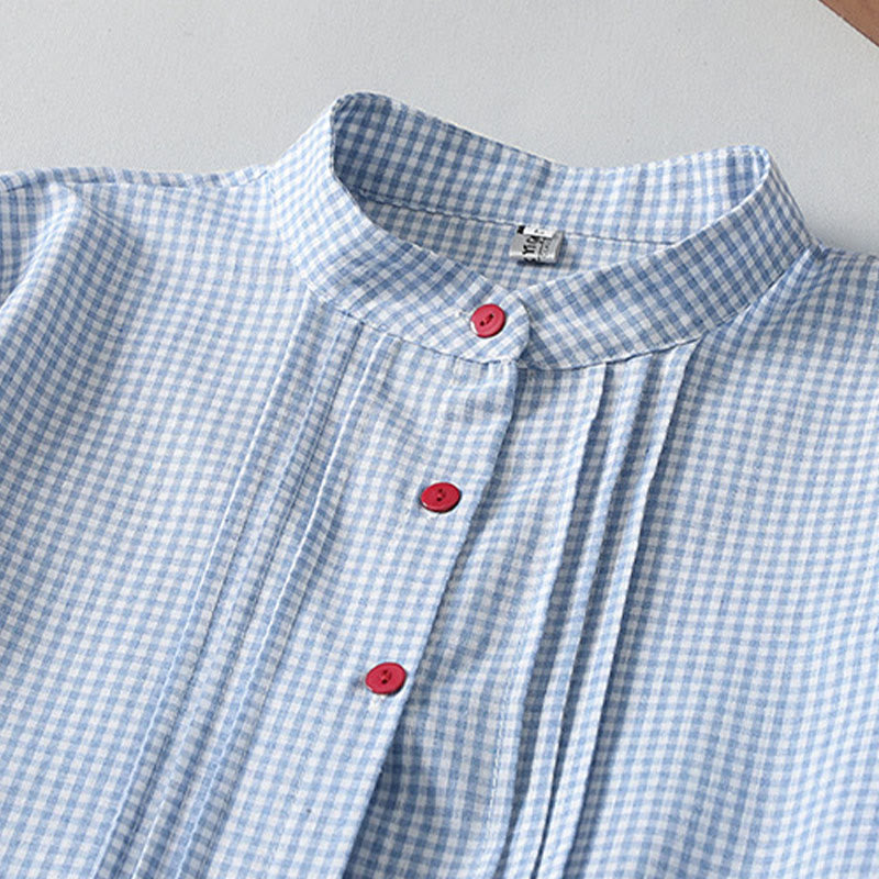 Buddha Stones Casual Plaid Pattern Long Lantern Sleeve Cotton Linen Midi Dress With Pockets - LightSkyBlue - US8-10,UK/AU12-14,EU40-42 (2XL) - image 1