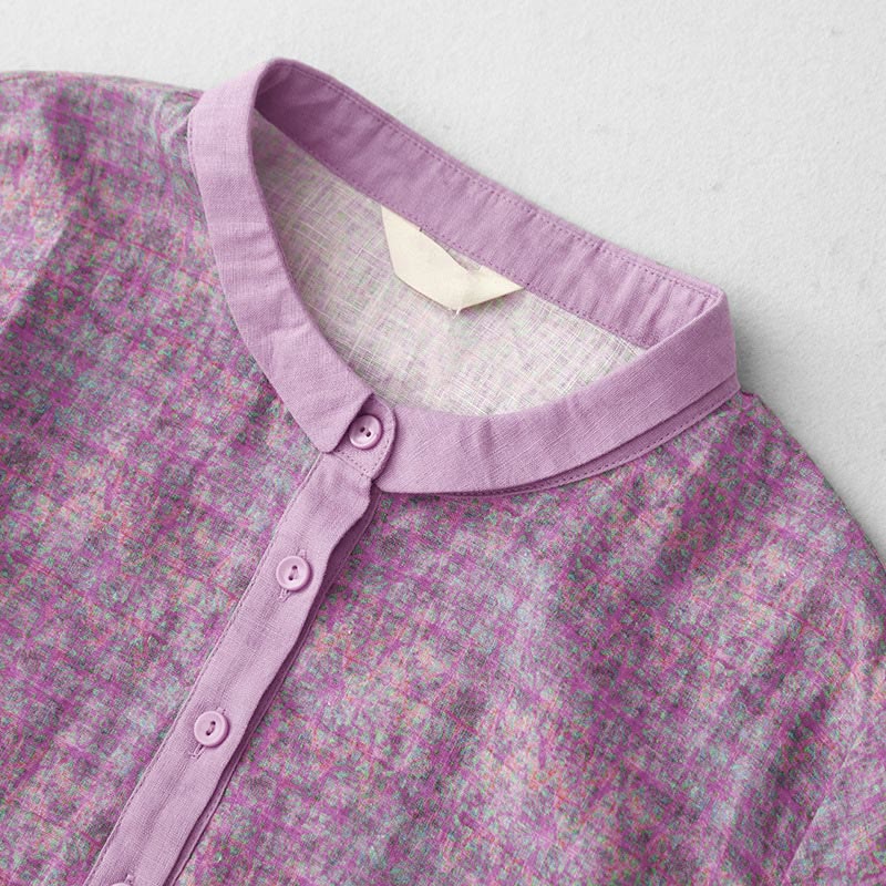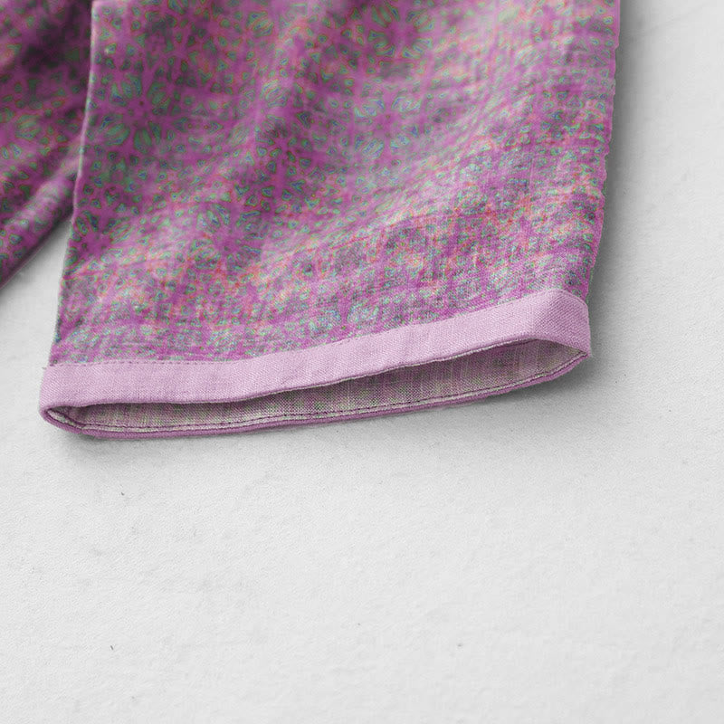Buddha Stones Commute Printing Floral Pattern Short Sleeve Cotton Linen Midi Dress With Pockets - Orchid - US8-10,UK/AU12-14,EU40-42 (2XL) - image 1