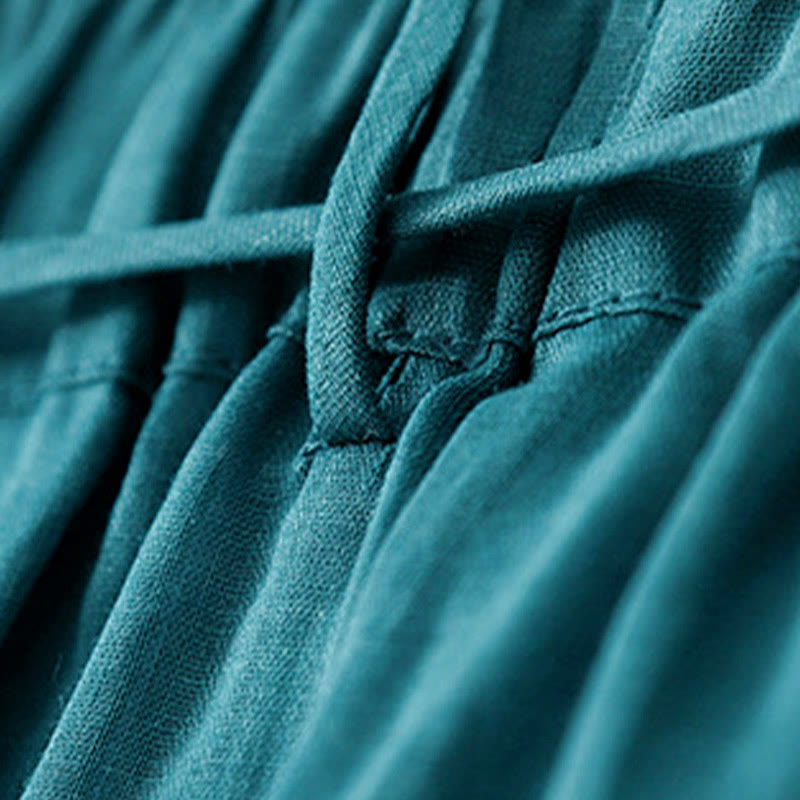 Buddha Stones Simple Design Drawstring Cotton Women's Wide Leg Pants With Pockets - Teal - US8-10,UK/AU12-14,EU40-42 (2XL) - image 1