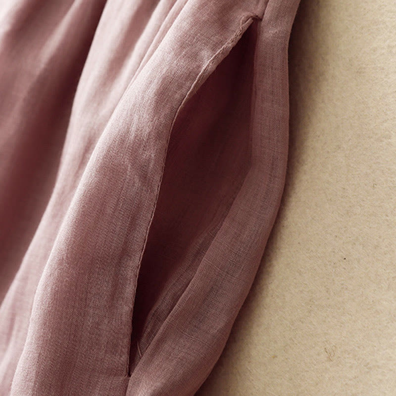 Buddha Stones Simple Design Drawstring Cotton Women's Wide Leg Pants With Pockets - PaleVioletRed - US8-10,UK/AU12-14,EU40-42 (2XL) - image 9