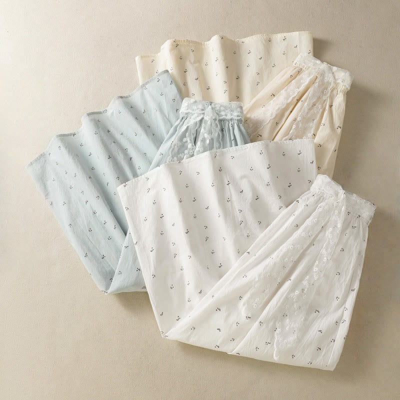 Buddha Stones Small Flowers Elastic Waist Cotton Women's Skirt With Pockets
