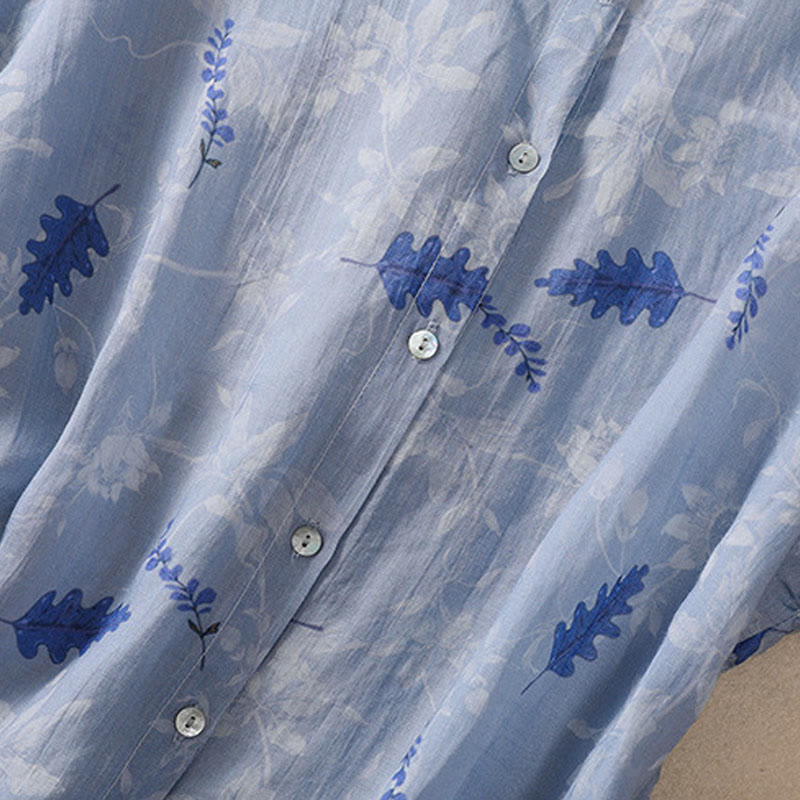 Buddha Stones Small Yellow Flower Leaves Buttons Short Sleeve Women's Shirt - SkyBlue - US8-10,UK/AU12-14,EU40-42 (2XL) - image 10