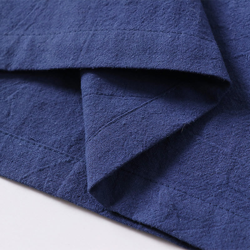Buddha Stones Solid Color Short Sleeve One Frog Button Cotton Linen Men's Shirt - DarkBlue - US/UK/AU54,EU64 (9XL) - image 3