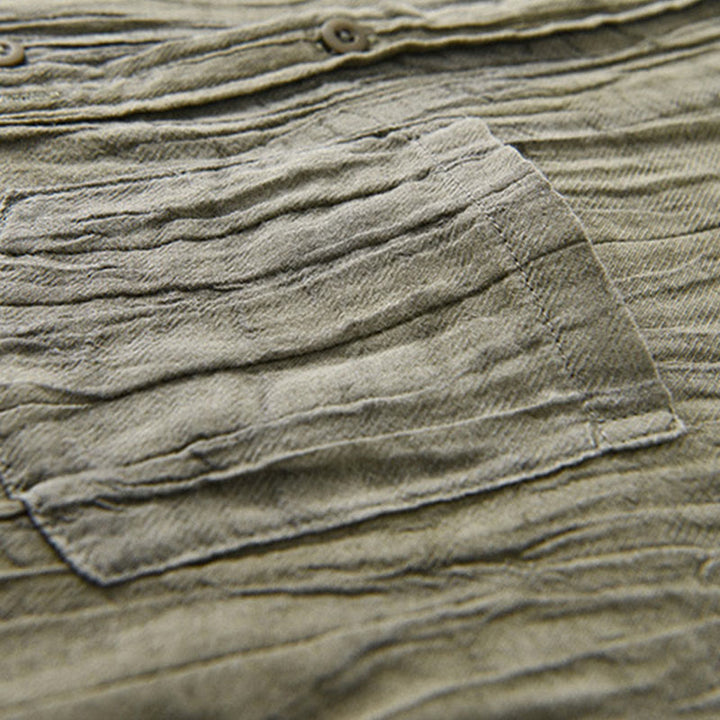 Buddha Stones Solid Long Sleeve Creases Design Buttons Down Ramie Linen Men's Shirts