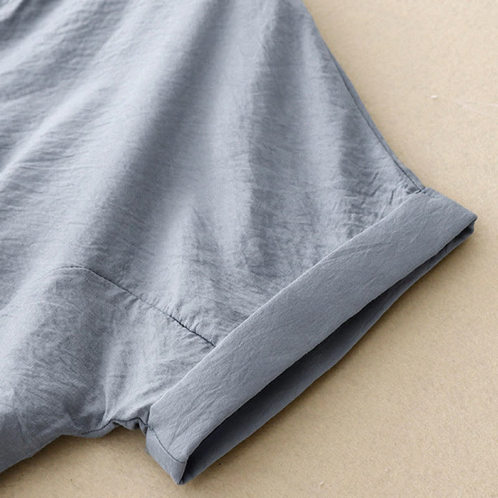 Buddha Stones Summer Button Lace-up Short Sleeve Women's Cotton Shirt