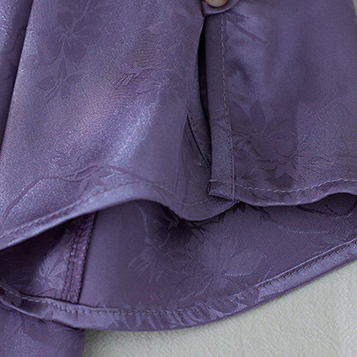 Buddha Stones Summer Solid Color Jacquard Flower Slit Design Three Quarter Sleeve Women's Shirt - BlueViolet - US8-10,UK/AU12-14,EU40-42 (2XL) - image 1