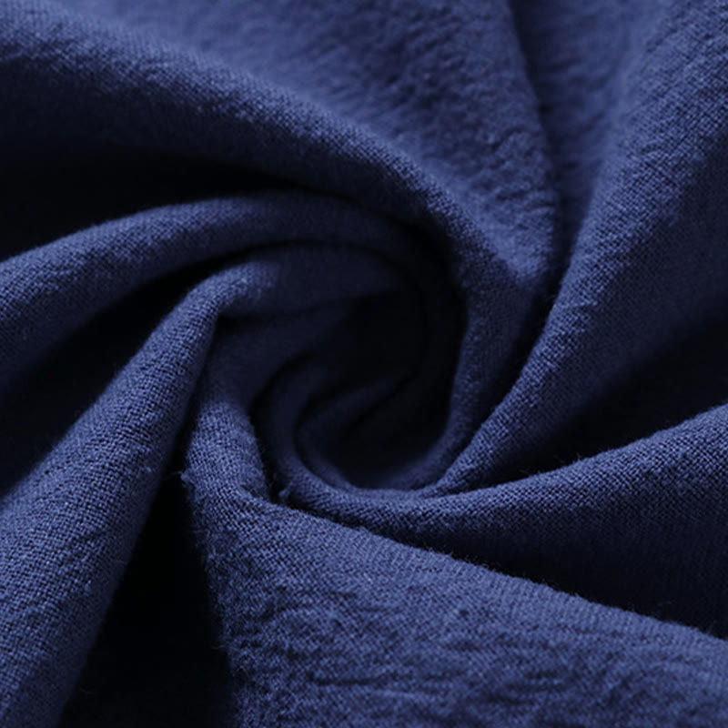 Buddha Stones Casual Plain Color Short Sleeve One Frog Button Cotton Linen Men's Shirt