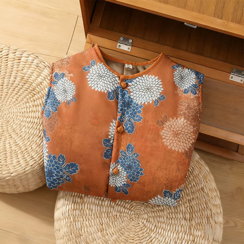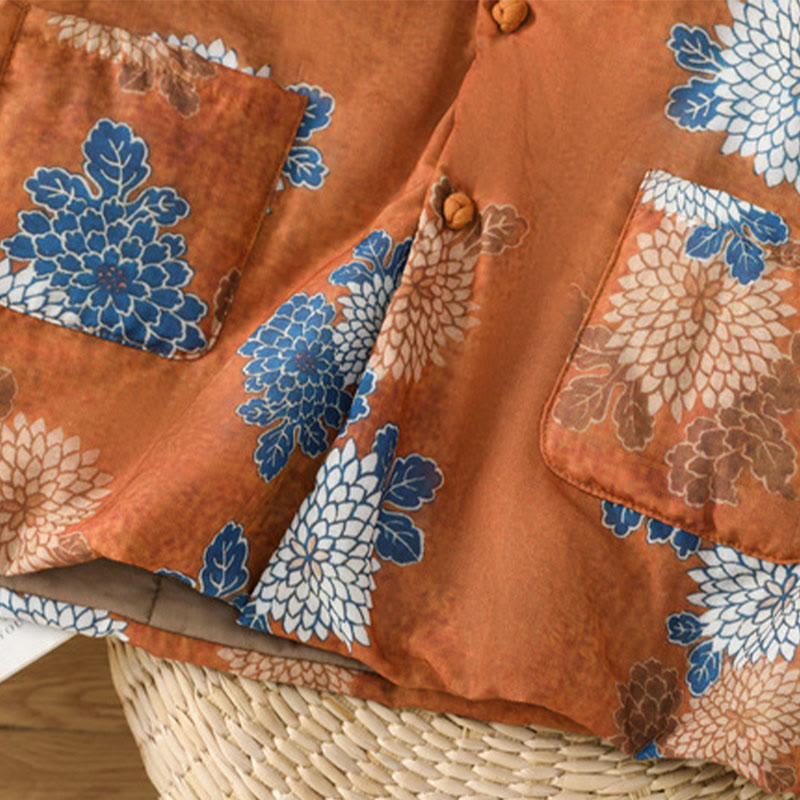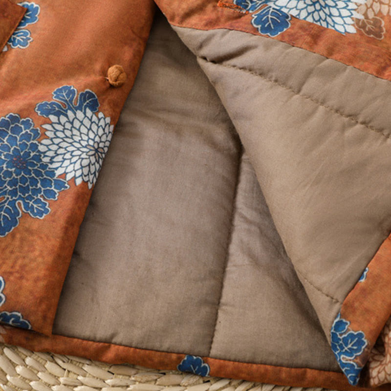 Buddha Stones Floral Prints Buttons Women's Sleeveless Cotton Vest Waistcoat With Pockets
