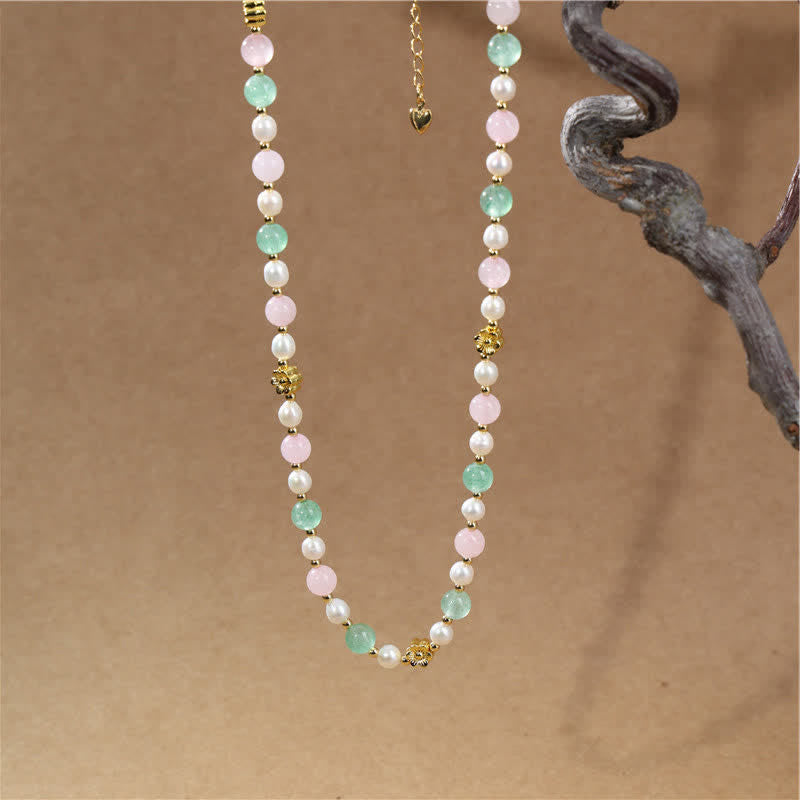 - Material: Rose Quartz, Green Strawberry Quartz, Pearl, Copper