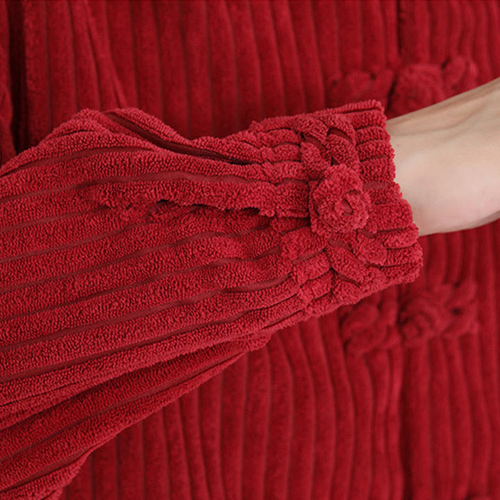 Buddha Stones Embroidery Bamboo Pattern Frog-Button Desgin Long Sleeve Men's Cotton Corduroy Jacket - Crimson - US/UK/AU46,EU56 (5XL) - image 9
