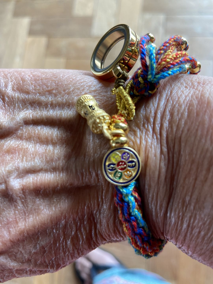 In lineages of Tibetan Vajrayana Buddhism, tying a cord or string around the wrist is common during ceremonies. Traditionally, the Lama blesses the string and then ties a knot and imbues it with a mantra. Similar to other traditions, it's said that these red cords bring luck and offer protection.