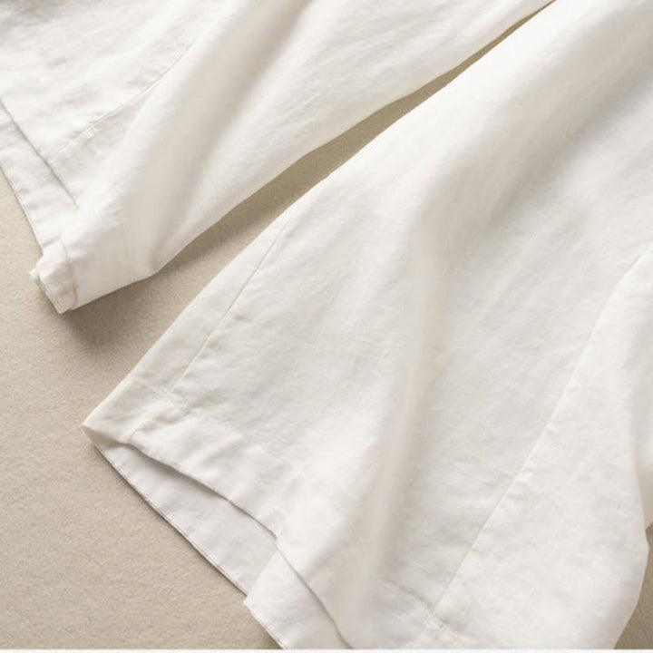 Buddha Stones Plain Color 7-8 Length Capri Cropped Pants Cotton Linen Women's Wide Leg Pants With Pockets - White - US12,UK/AU16,EU44 (3XL) - image 7
