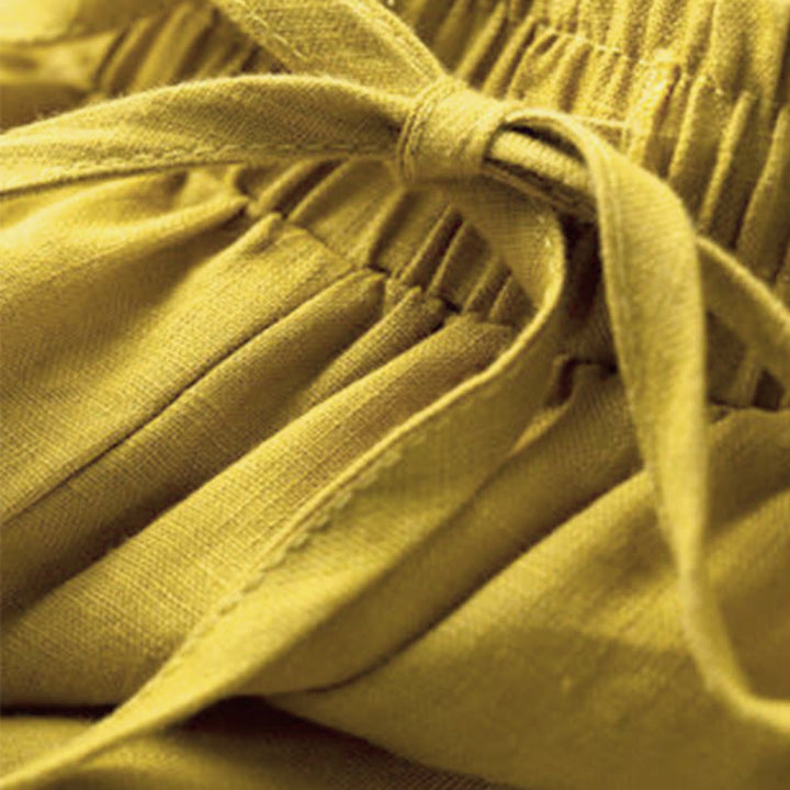 Buddha Stones Plain Color 7-8 Length Capri Cropped Pants Cotton Linen Women's Wide Leg Pants With Pockets - DarkGoldenrod - US12,UK/AU16,EU44 (3XL) - image 12