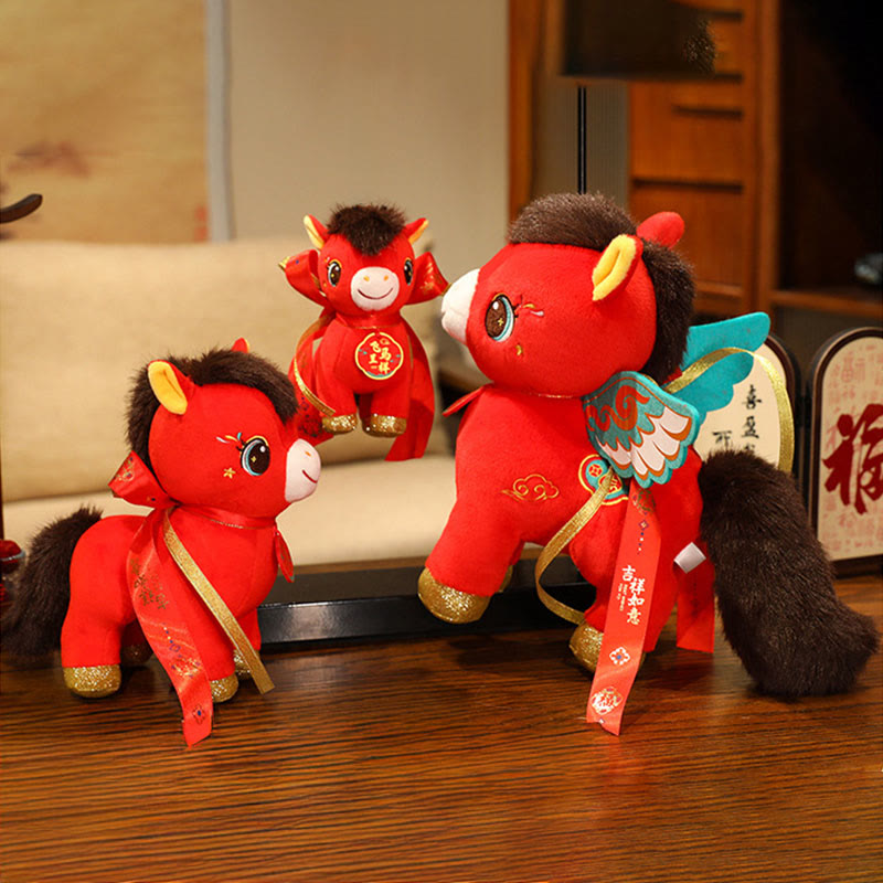 Buddha Stones Year Of The Horse Auspicious Cloud Pattern Winged Horse Plush Doll Energy Home Decoration - image 0
