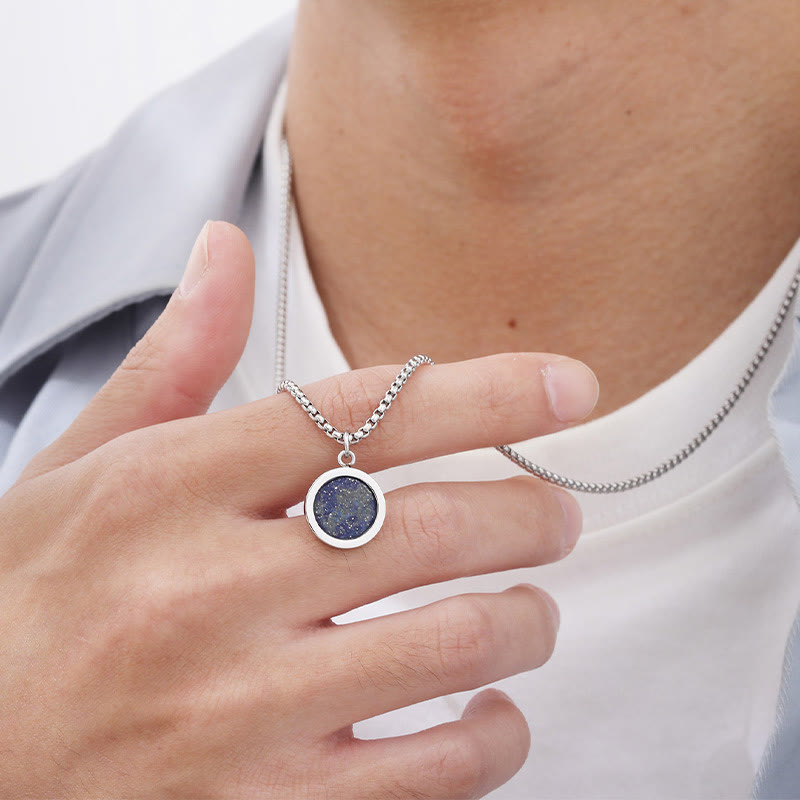 Buddha Stones Natural Stone Turquoise Tiger Eye  Lazurite Malachite Titanium Steel Purification Necklace Pendant