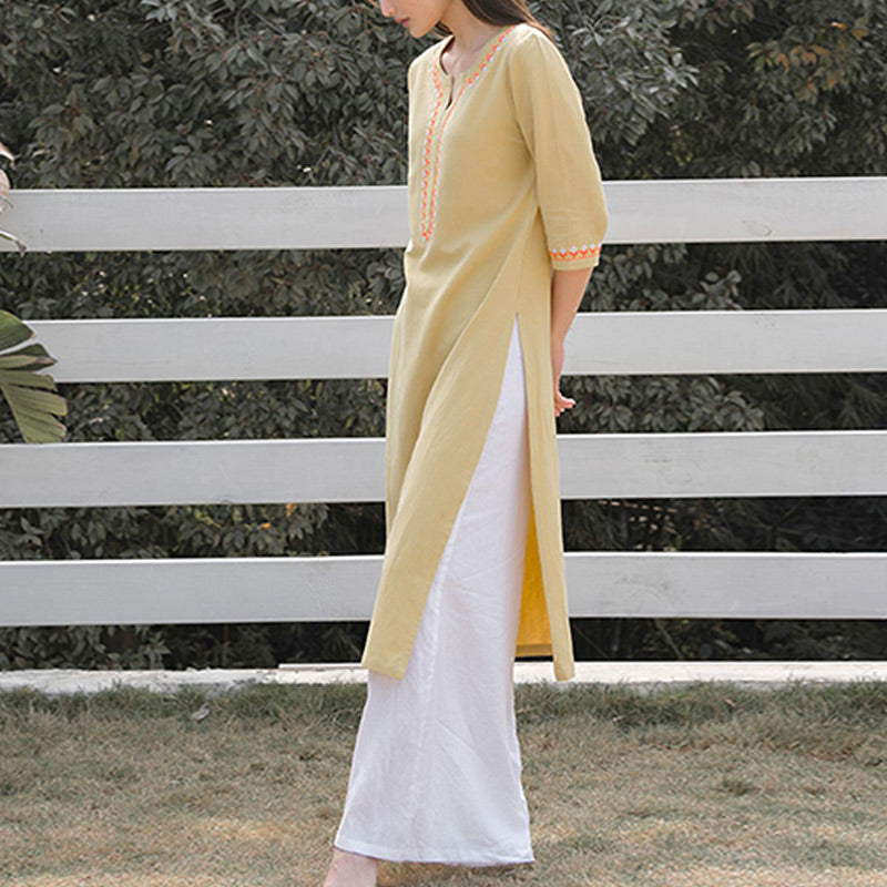 Buddha Stones 2Pcs V-neck Embroidery Yoga Clothing Zen Meditation Cotton Linen Top Pants Women's Set - Yellow(Top Only) - US12,UK/AU16,EU44 (2XL)  - image 21