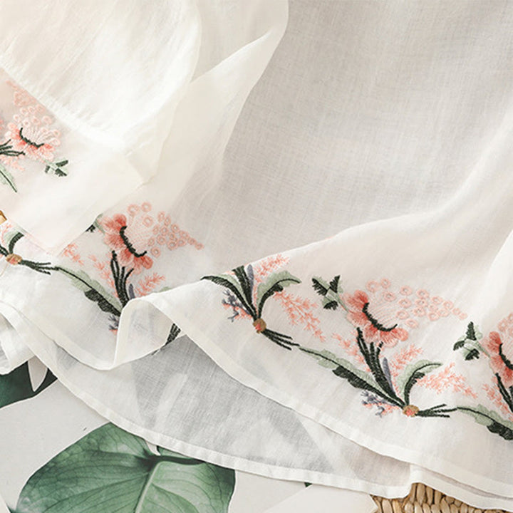 Buddha Stones Casual Floral Embroidery Crew Neck Women's Frog-Button Polyester Half Sleeve Shirt - White - US8-10,UK/AU12-14,EU40-42 (2XL) - image 7
