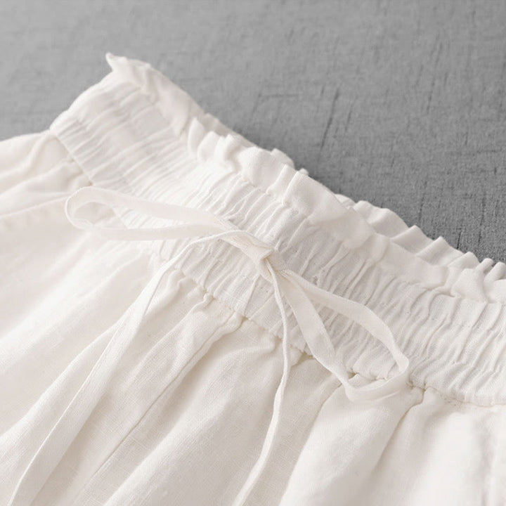 Buddha Stones Casual High Waist Ruffled Drawstring Design Women's Wide Leg Cotton Pants With Pockets