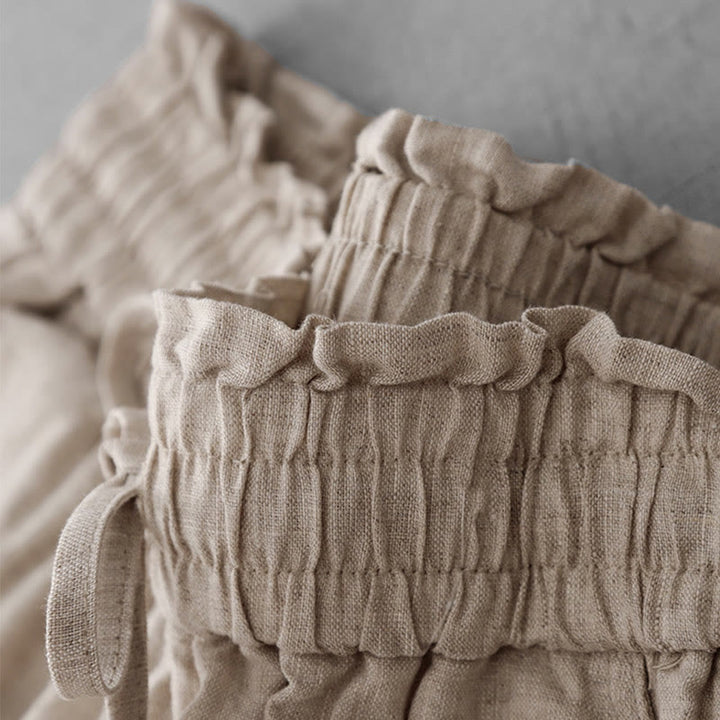 Buddha Stones Casual High Waist Ruffled Drawstring Design Women's Wide Leg Cotton Pants With Pockets - Linen - US12,UK/AU16,EU44 (2XL) - image 0