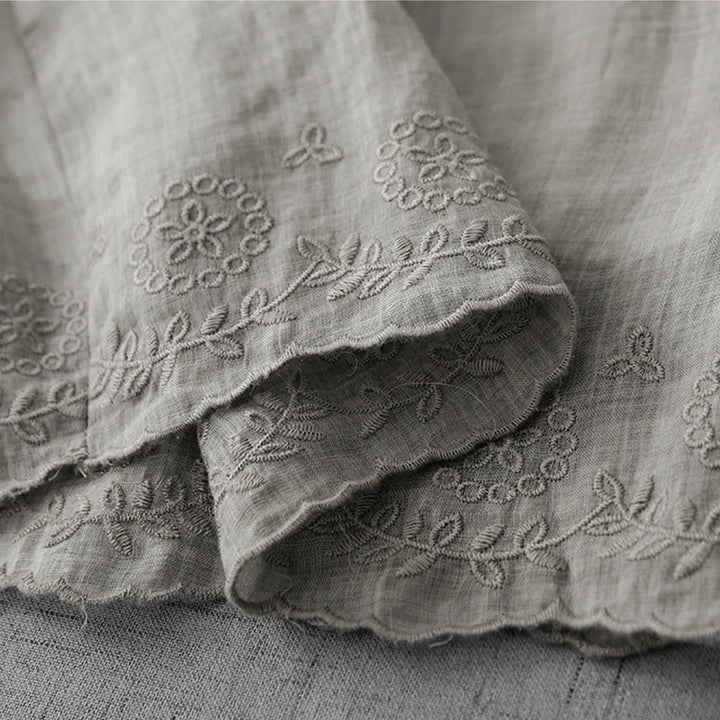 Buddha Stones Commute Solid Color Lace Embroidery Design Cotton Women's Wide Leg Cropped Pants With Pockets - image 16