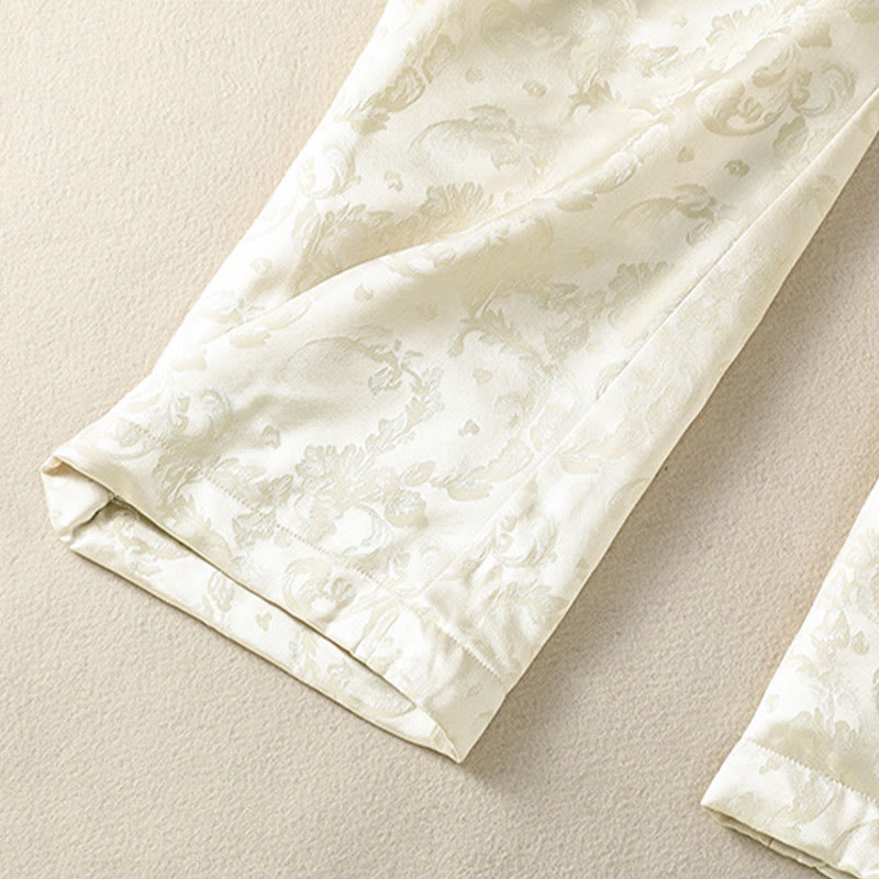 Buddha Stones Jacquard High Waist Design Women's Wide Leg Thermal Thickened Pants With Pockets