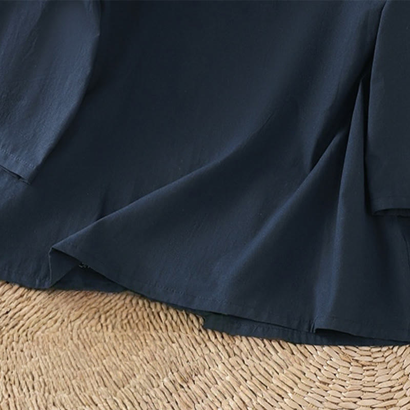 Buddha Stones Retro Embroidery Lace-Up Women's Three Quarter Sleeve Cotton Linen T-Shirt - MidnightBlue - US12,UK/AU16,EU44 (2XL) - image 14