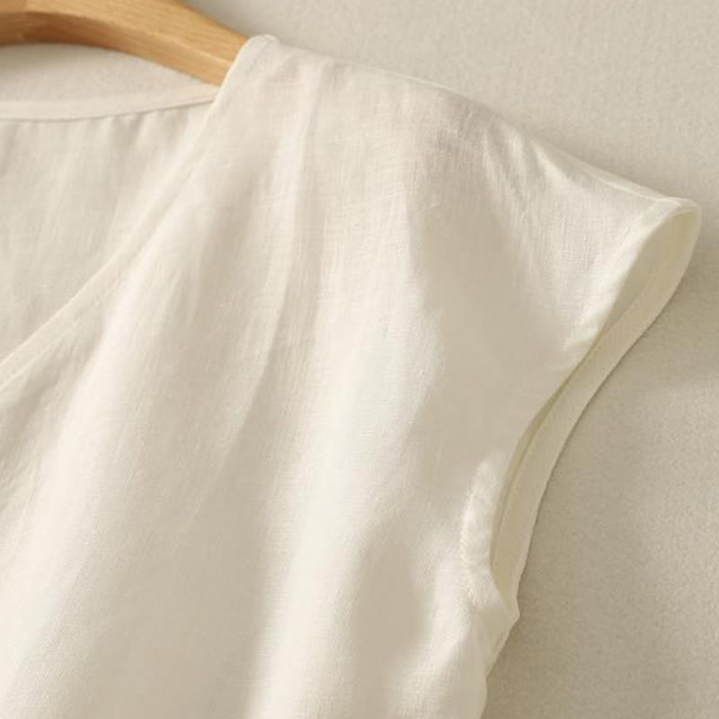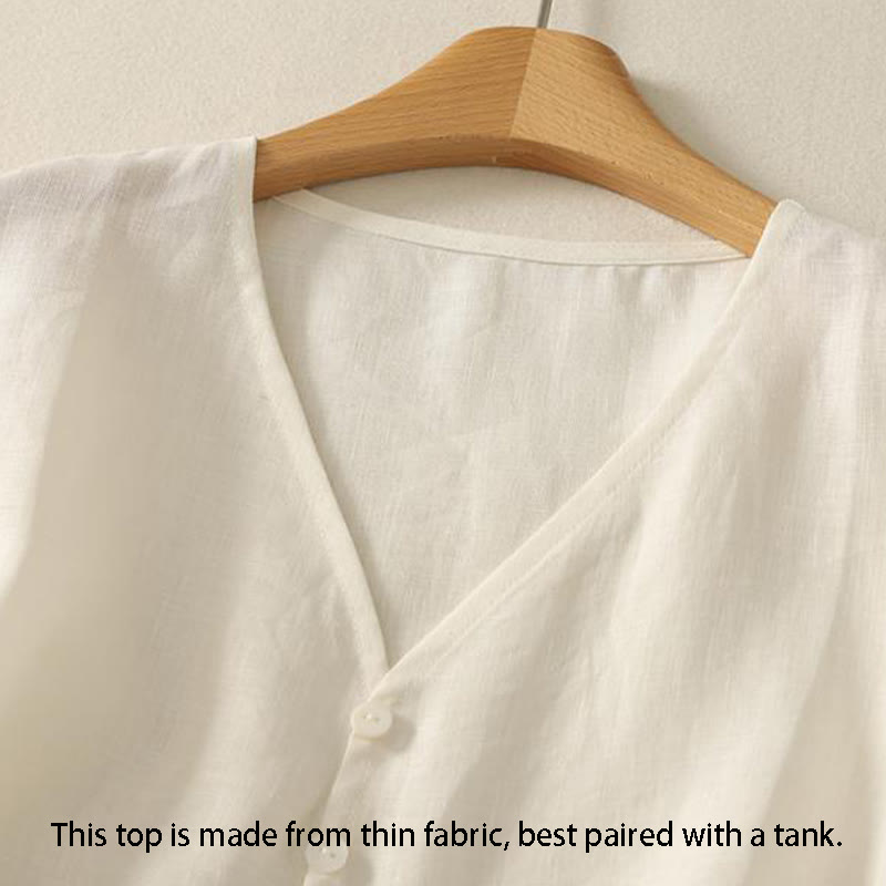 Buddha Stones Retro V-Neck Button Design Women's Cotton Sleeveless Vest - Linen - US8-10,UK/AU12-14,EU40-42 (2XL) - image 6