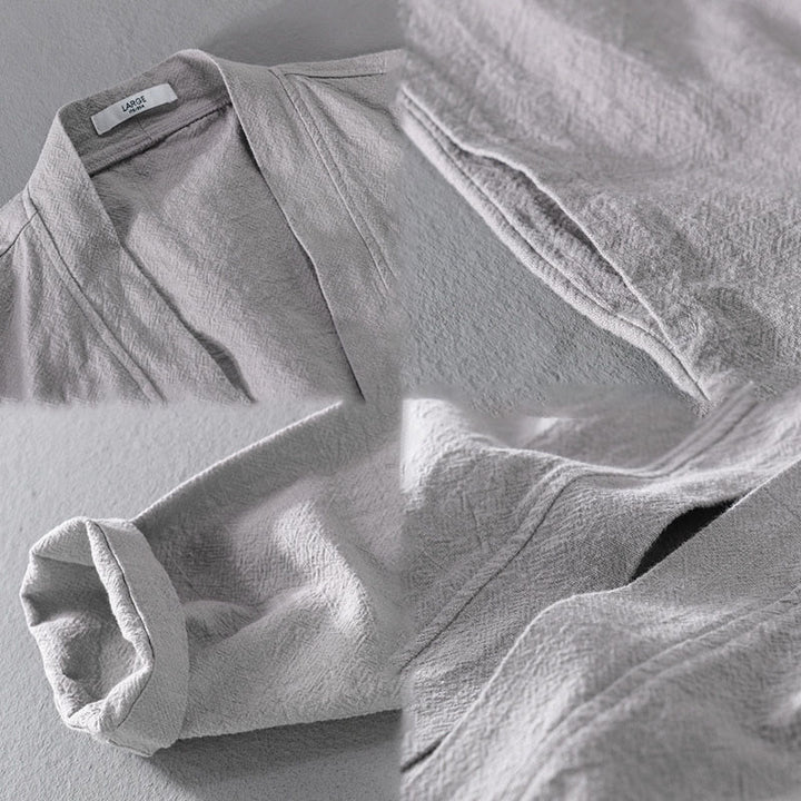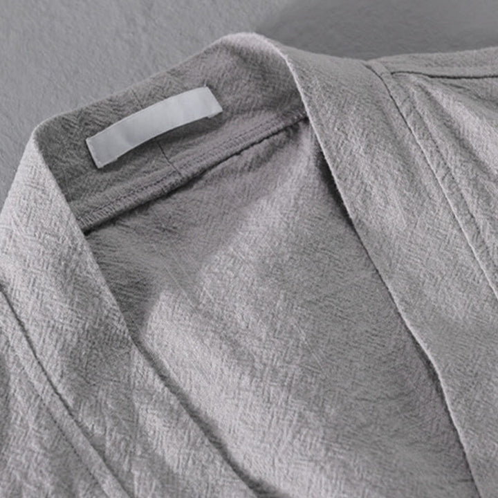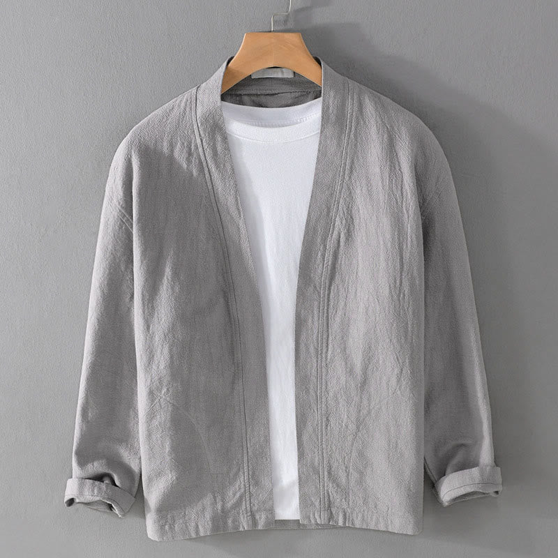 Buddha Stones Simple Long Sleeve Open Front Ramie Cotton Men's Shirts With Pockets - LightGrey - US/UK/AU42,EU52 (3XL) - image 0