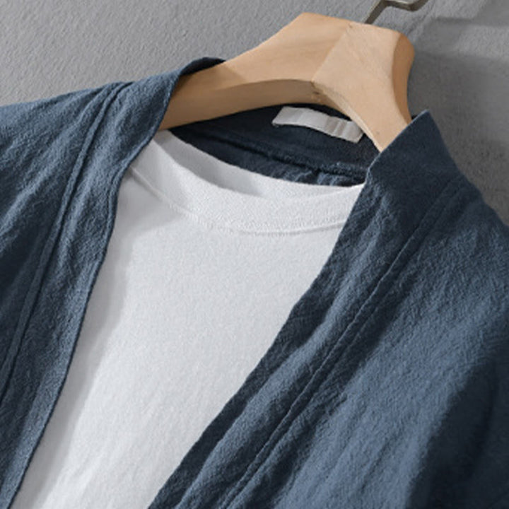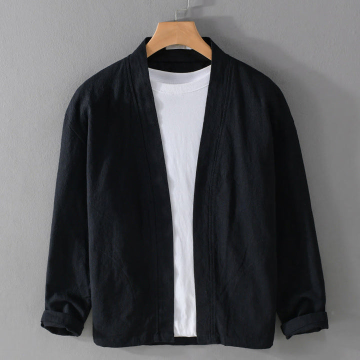 Buddha Stones Simple Long Sleeve Open Front Ramie Cotton Men's Shirts With Pockets - image 1