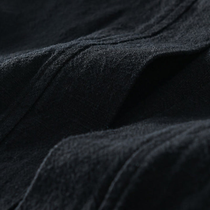 Buddha Stones Simple Long Sleeve Open Front Ramie Cotton Men's Shirts With Pockets - Black - US/UK/AU42,EU52 (3XL) - image 11