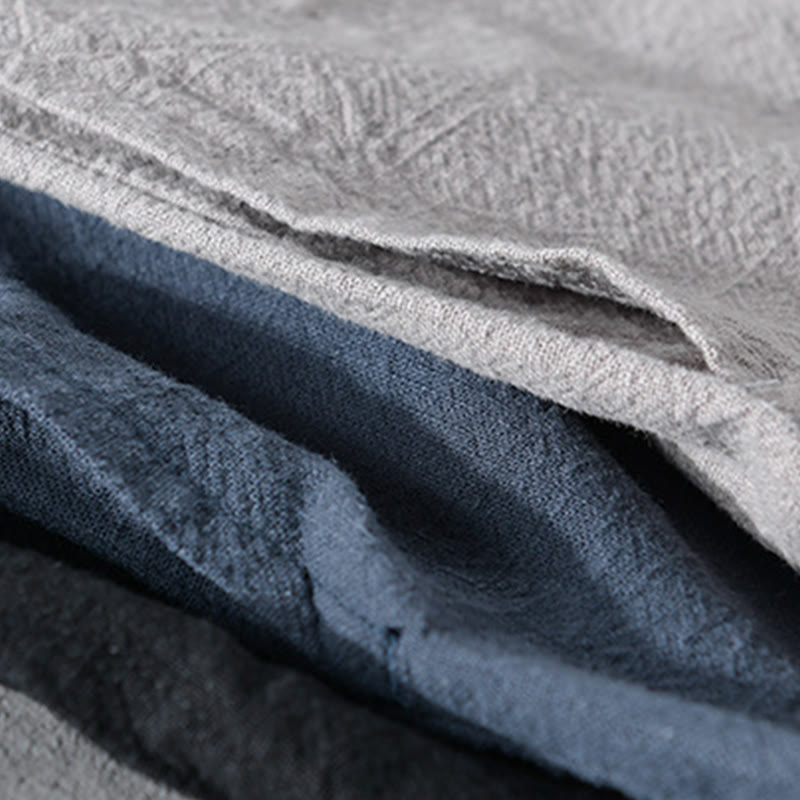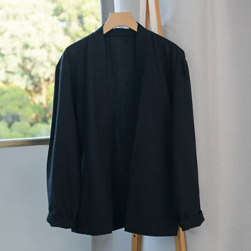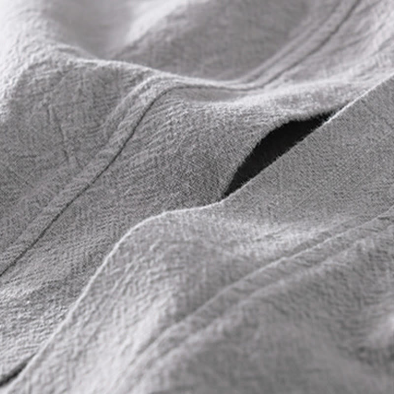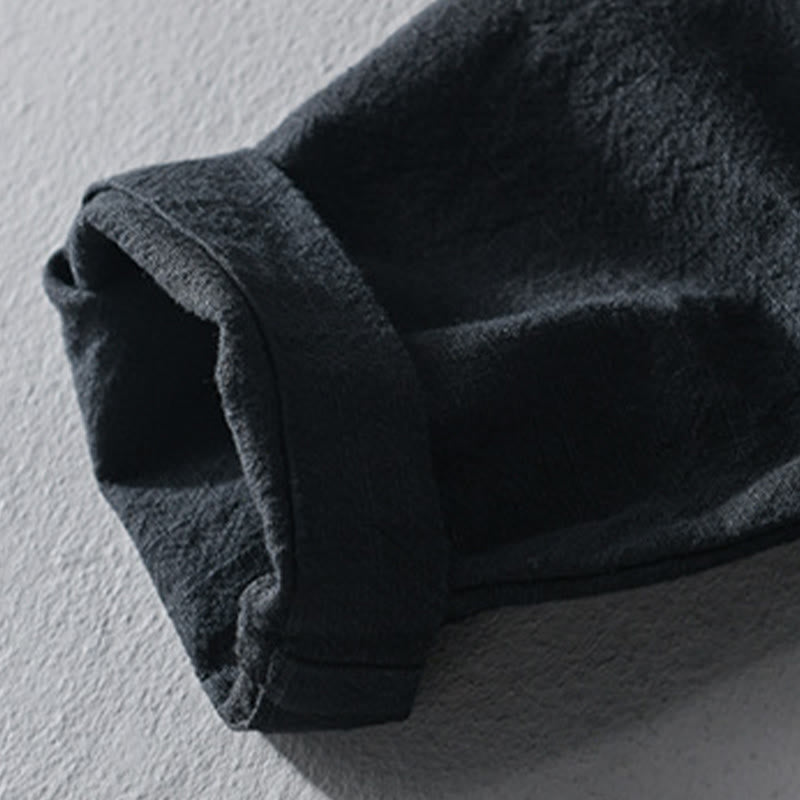 Buddha Stones Simple Long Sleeve Open Front Ramie Cotton Men's Shirts With Pockets
