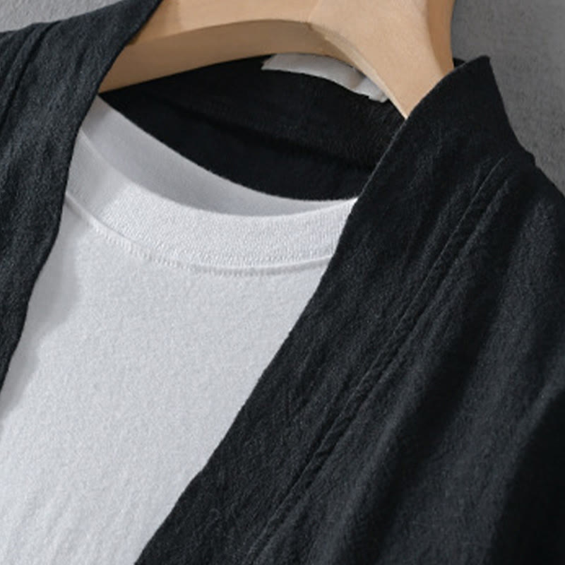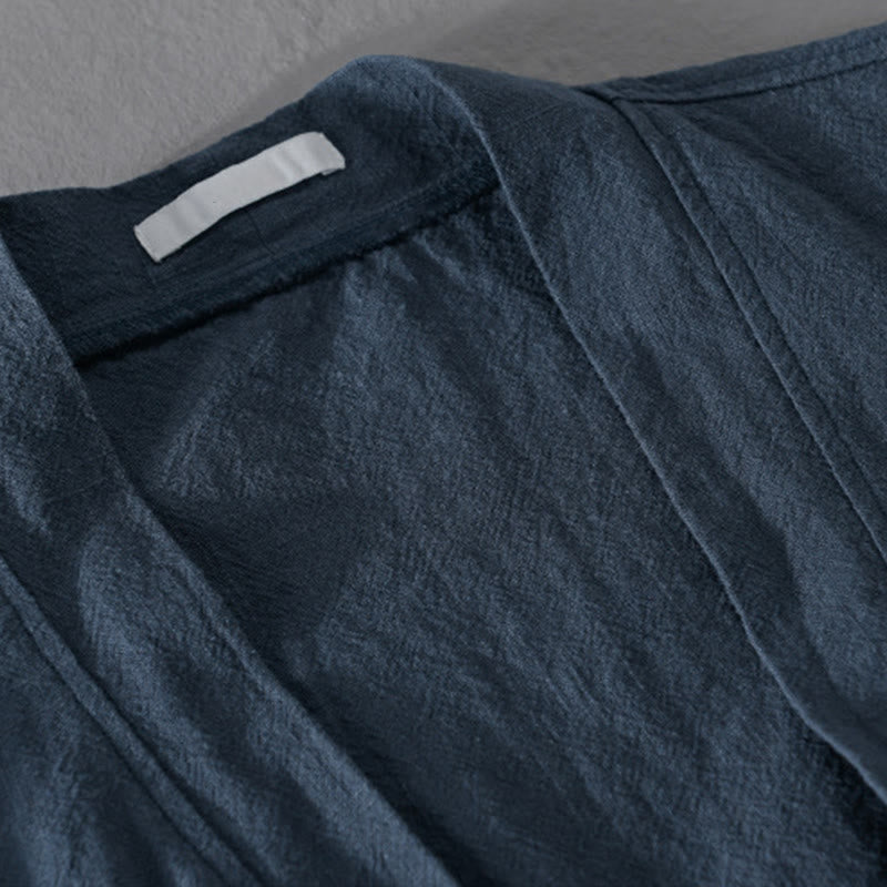 Buddha Stones Simple Long Sleeve Open Front Ramie Cotton Men's Shirts With Pockets - image 12