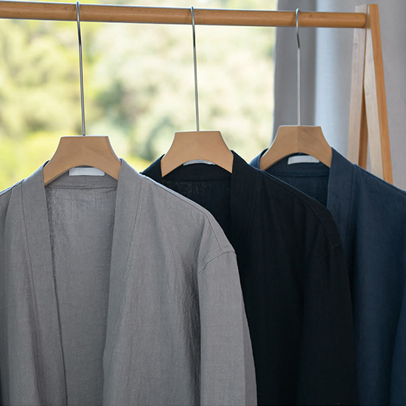 Buddha Stones Simple Long Sleeve Open Front Ramie Cotton Men's Shirts With Pockets - image 20