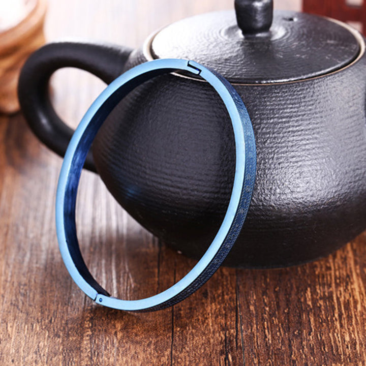 This Buddha Stones Titanium Steel Blessing Bracelet Bangle is handmade with selected high-quality materials. It offers beneficial physiological effects on the human body, including strengthening mental activity, improving work efficiency, and sleep quality.