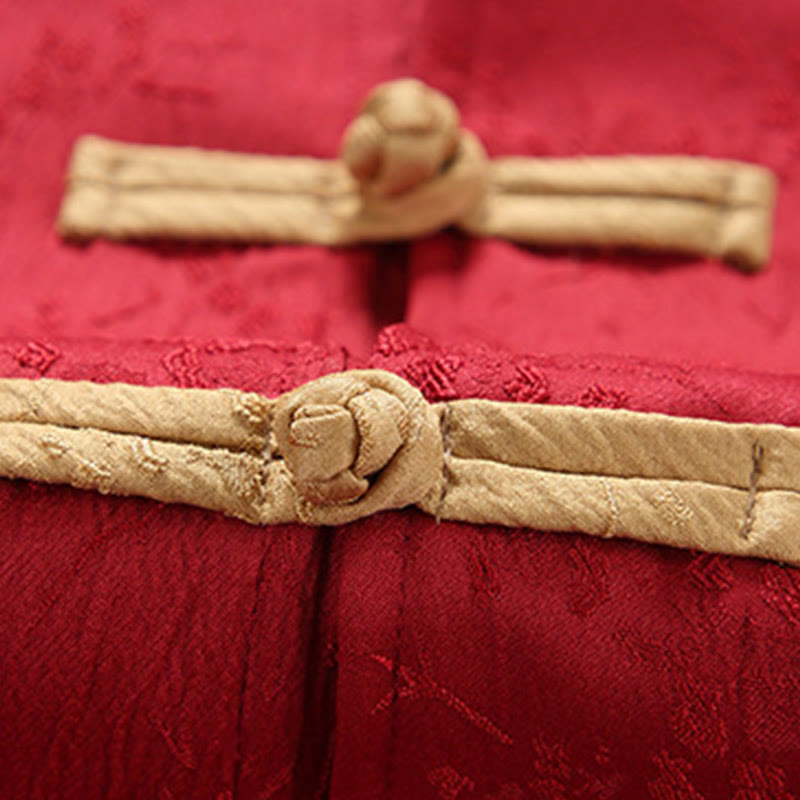 Buddha Stones Jacquard Stand Collar Long Sleeve Men's Cotton Jacket With Pockets - Crimson - US/UK/AU46,EU56 (5XL) - image 0