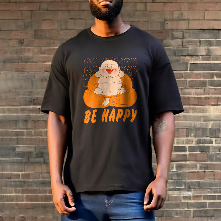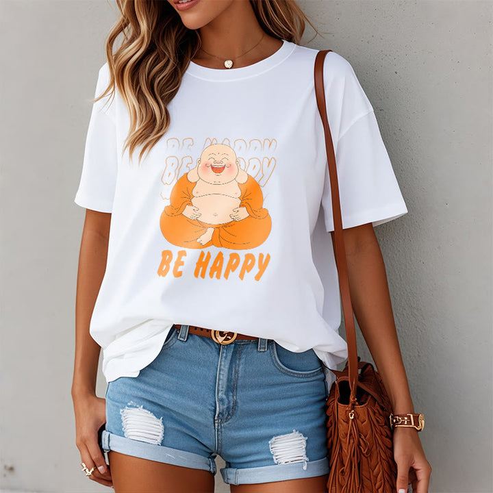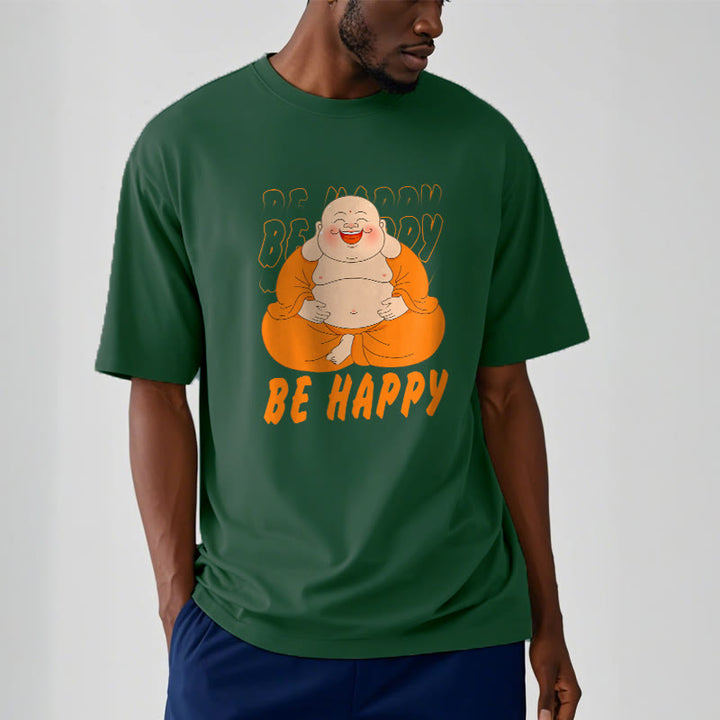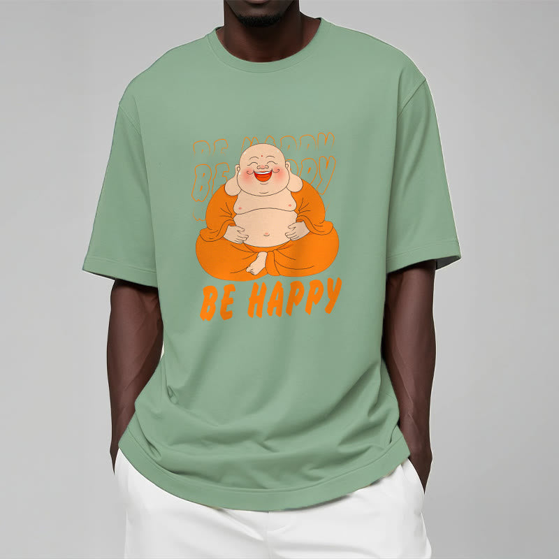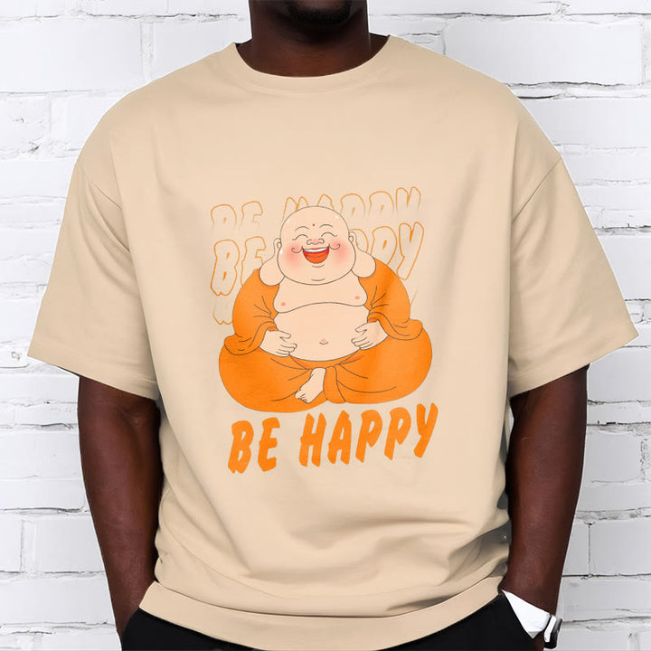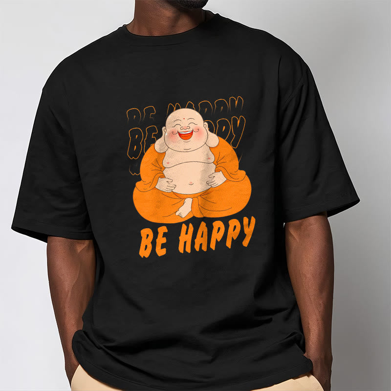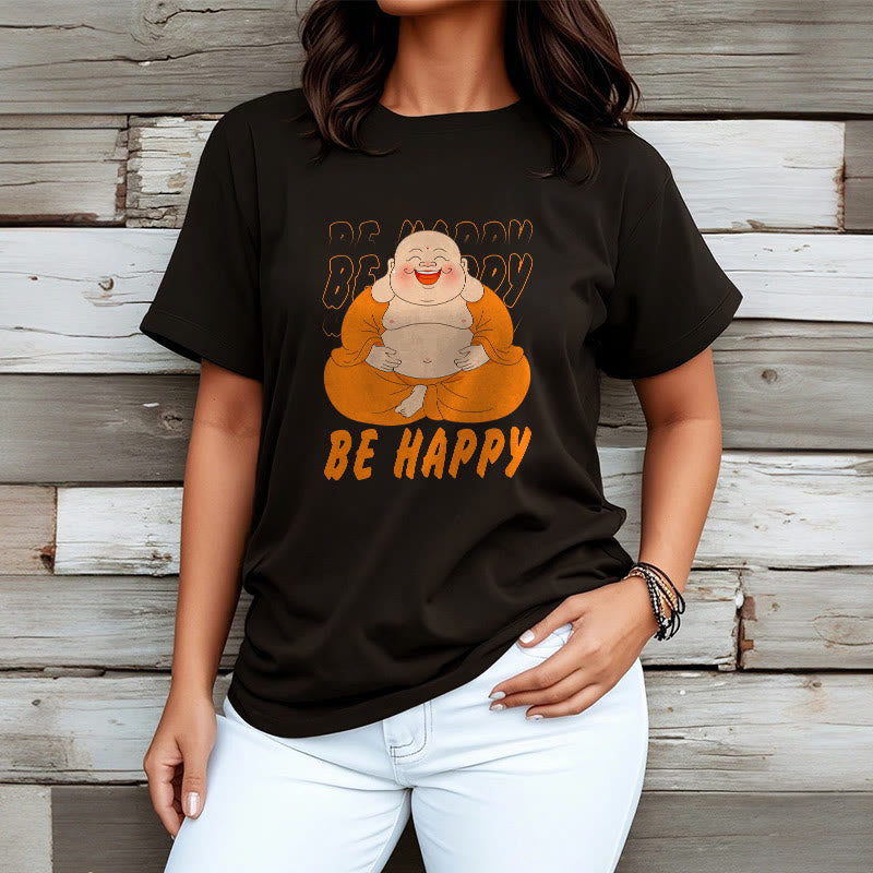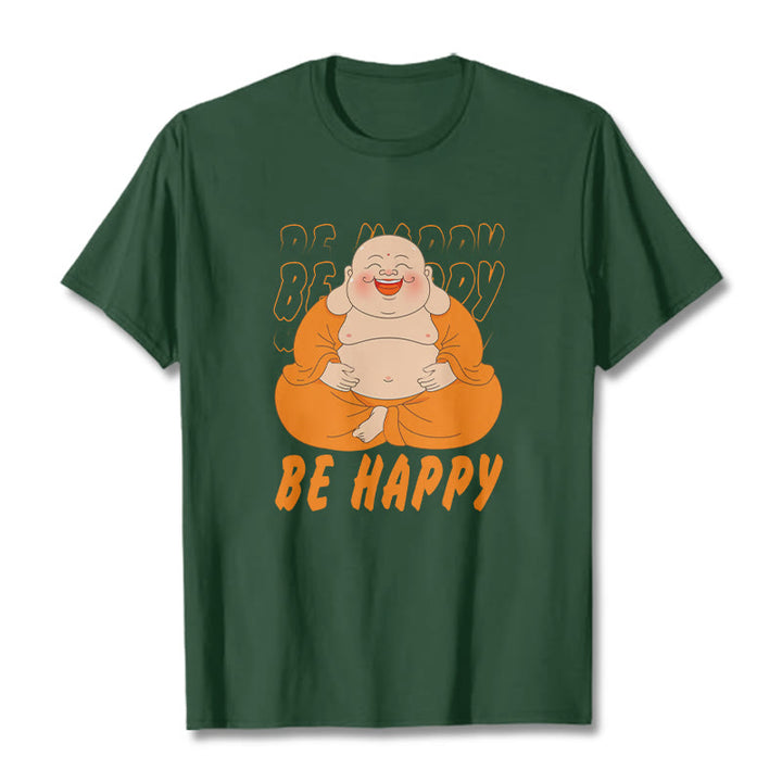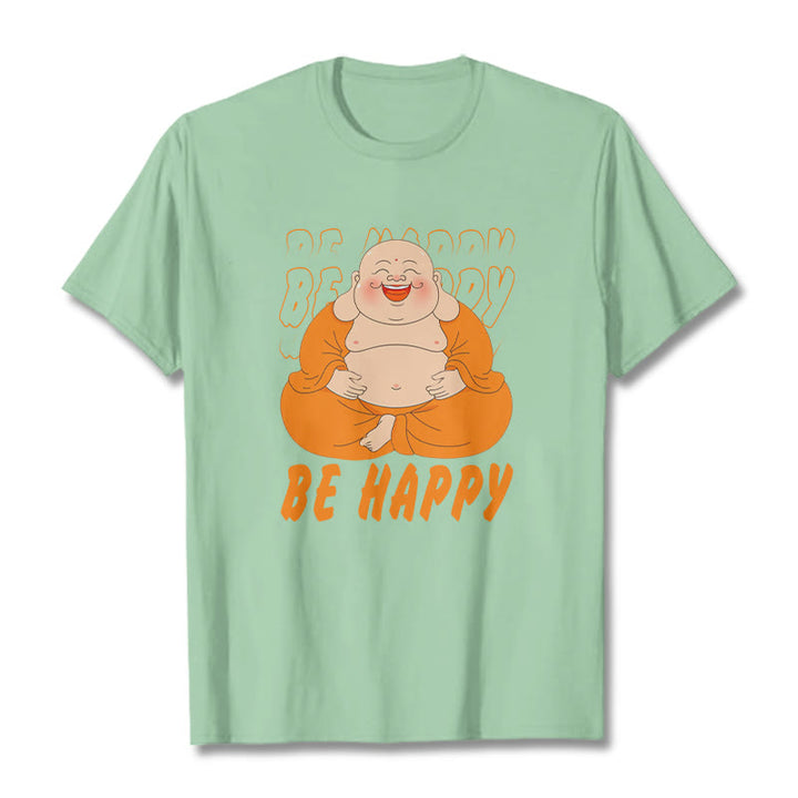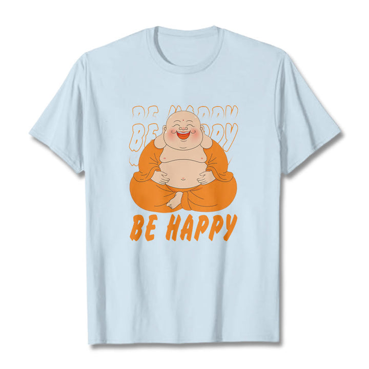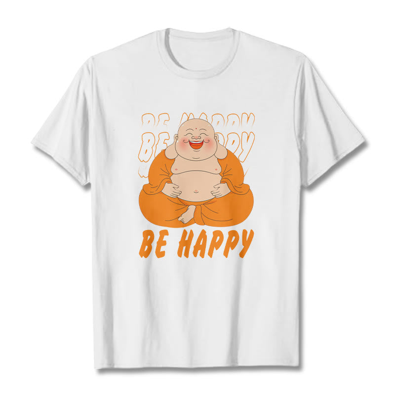 Be Happy Tee T-shirt features a cheerful design with an uplifting message. Crafted from soft, breathable fabric, this t-shirt ensures maximum comfort. The vibrant print serves as a reminder to embrace positivity and joy in every moment. This tee combines comfort and inspiration to enhance your mindfulness practice.