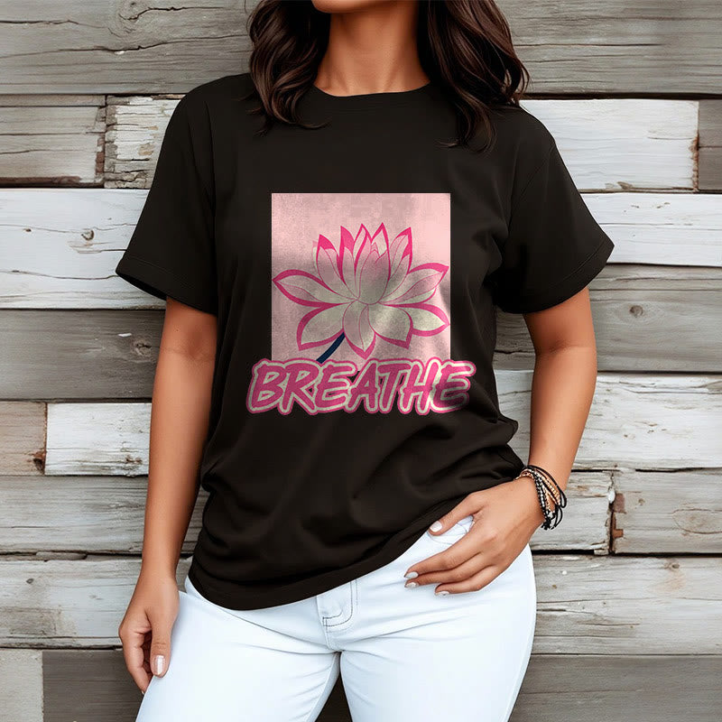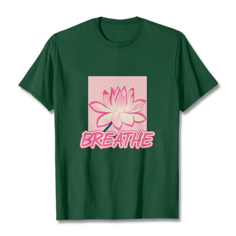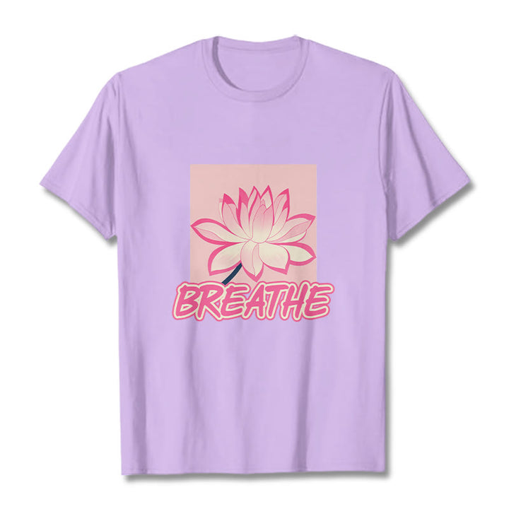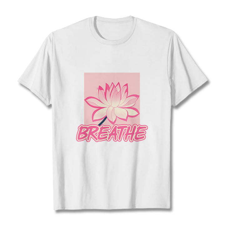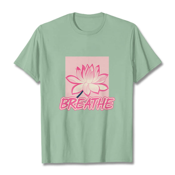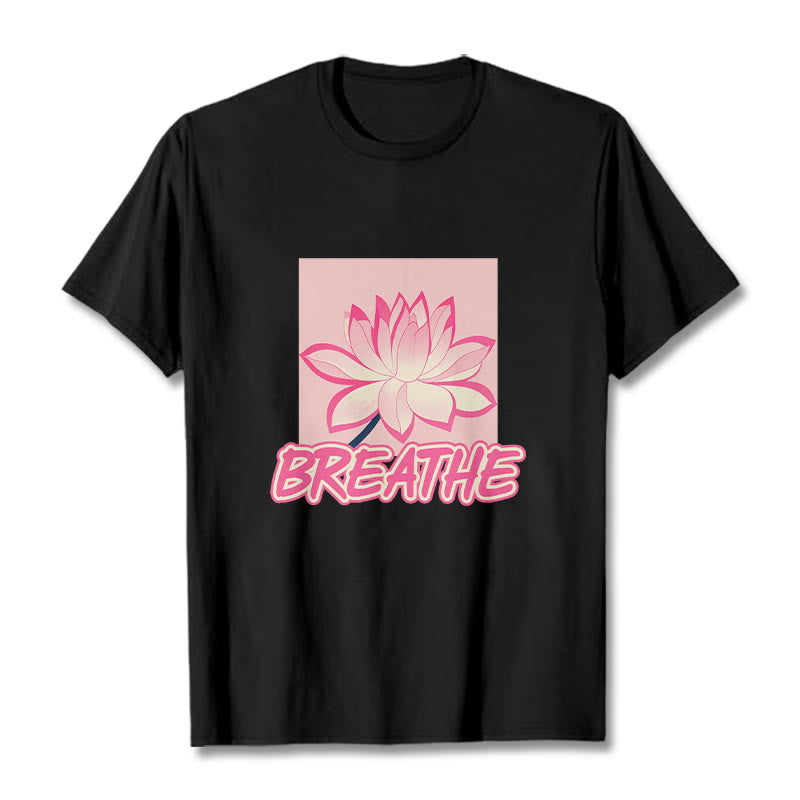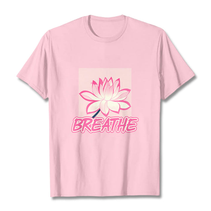 Buddha Stones BREATHE Pink Lotus Flower Tee T-shirt