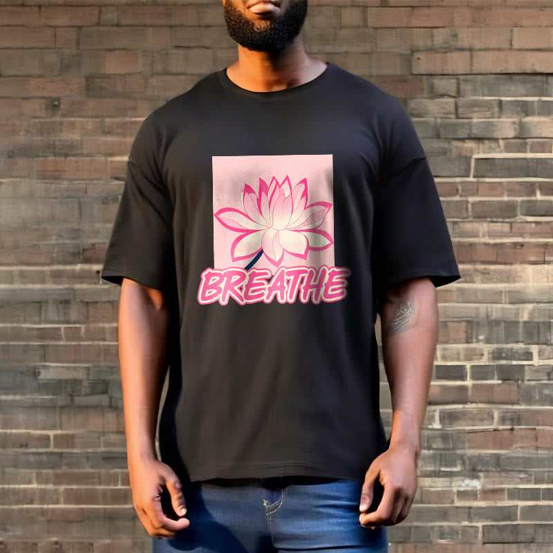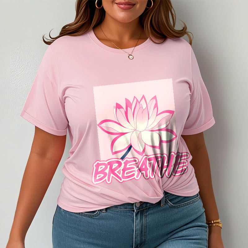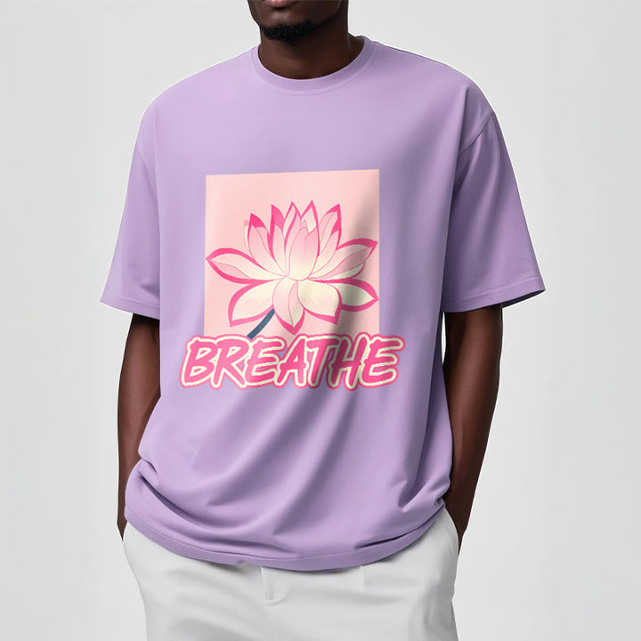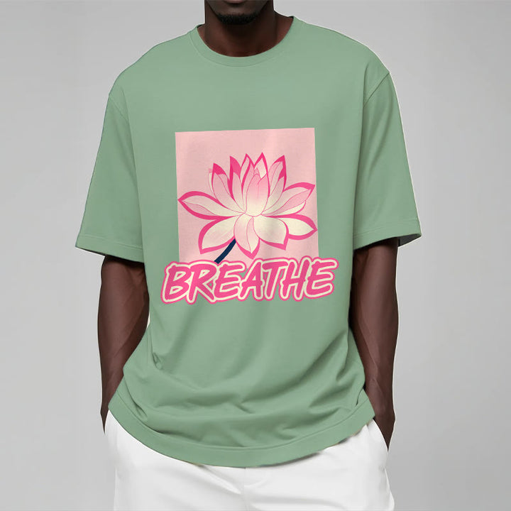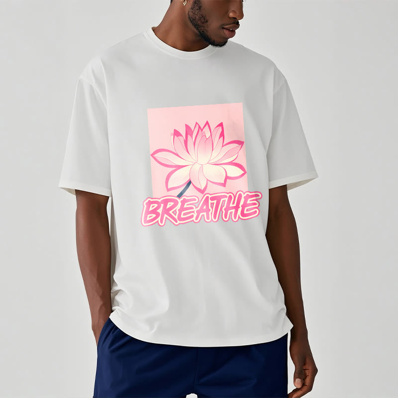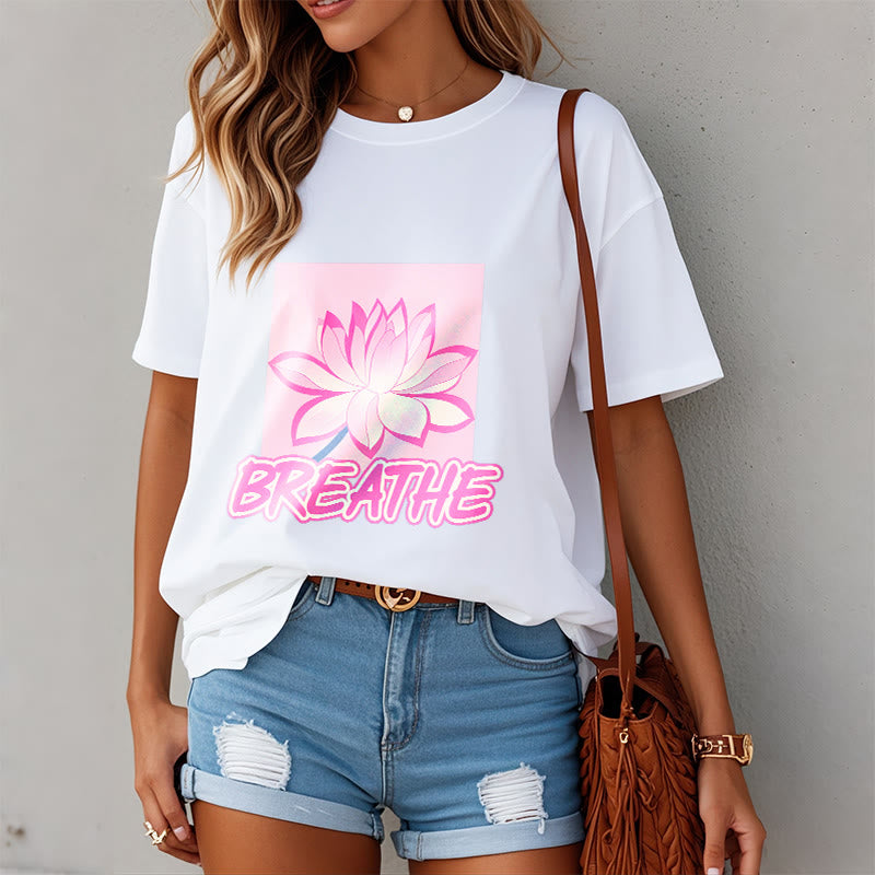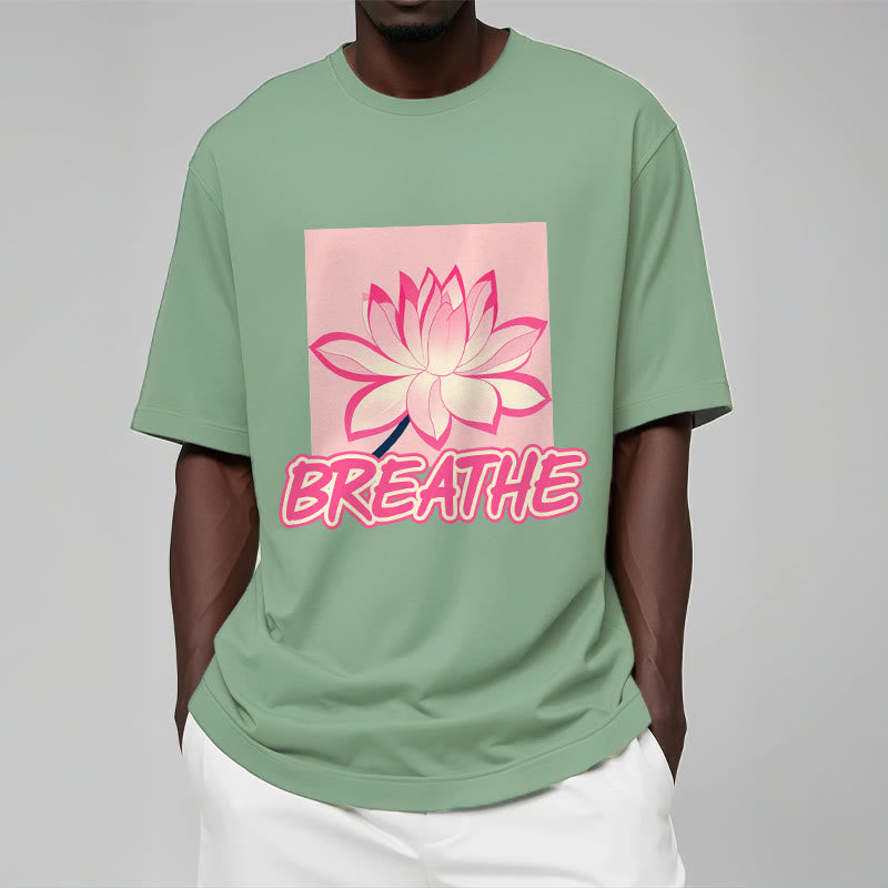 Buddha Stones BREATHE Pink Lotus Flower Tee T-shirt