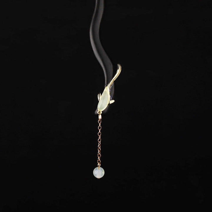 Buddha Stones Ebony Hetian Jade Fish Blessing Hairpin