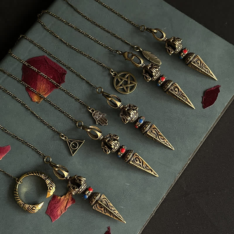 Buddha Stones Pentagram Eye of God Feather Hamsa Copper Healing Necklace Pendant Pendulum