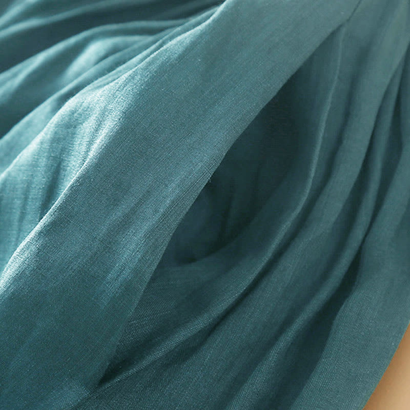 Buddha Stones Plain Lace Up Elastic Waist Women's Skirt With Pockets - Teal - US8-10,UK/AU12-14,EU40-42 (2XL) - image 0