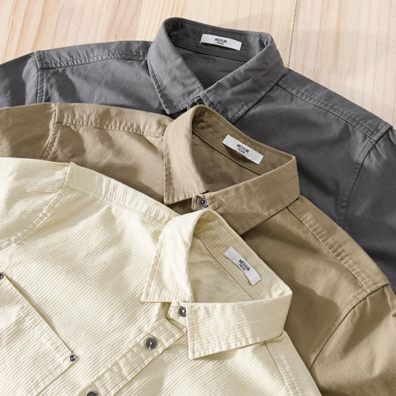 Buddha Stones Fall Triangle Rhombus Decorative Pocket Buttons Down Stand Collar Long Sleeve Men's Cotton Shirt - Gray - US/UK/AU42,EU52 (3XL) - image 0